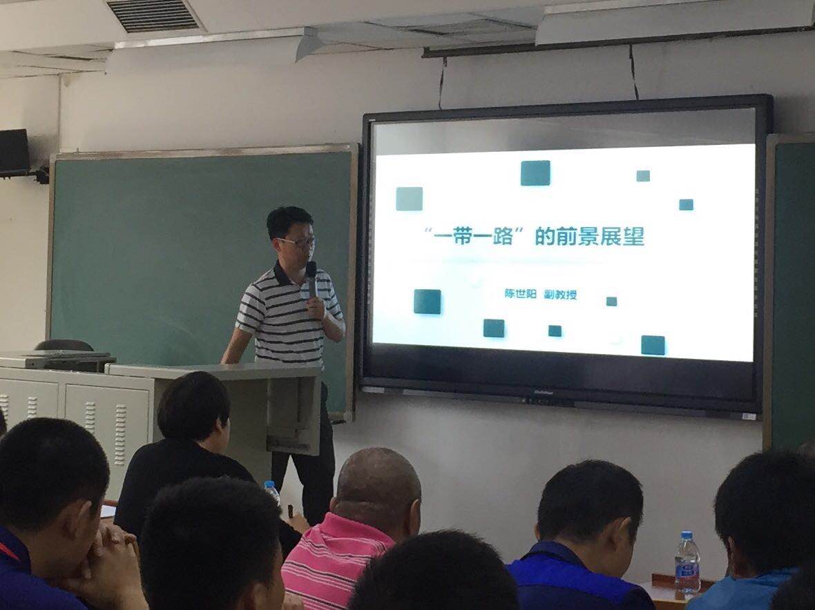 陈世阳副教授分别从 “一带一路”的挑战、机遇和前景三个部分解读了建设“一带一路”对我国和世界经济发展、区域和平稳定的重要意义,客观分析了我国发展面临的国际国内形式、机遇和挑战,并就新形势下如何融入“一带一路”倡议进行了剖析,帮助党员们深刻理解“一带一路”倡议。陈世阳老师表示“一带一路”国家战略构思之精妙,体现出“一带一路”建设对于促进全球经济繁荣和拓展我国的战略空间具有深远意义,彰显大国智慧。