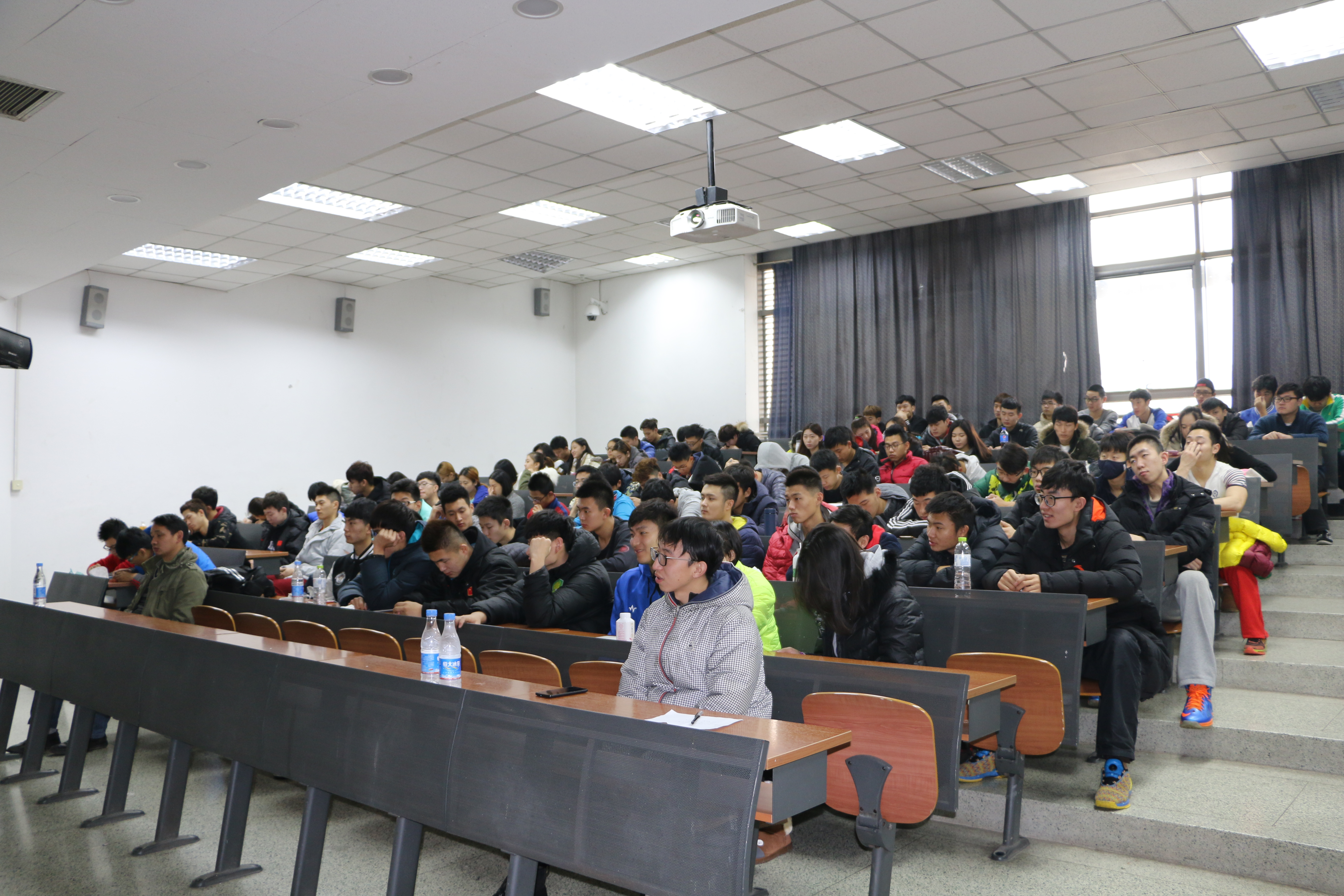 2015年12月9日上午10点整,Beat365中文官方网站特别邀请到来自清华大学的教授李健老师在教学楼315教室对Beat365中文官方网站同学们进行“红色文化系列教育”之美国电影如何控制中国学生头脑相关知识讲授。2015级的辅导员鲁骥和陈嘉宝老师也出席了此次活动。