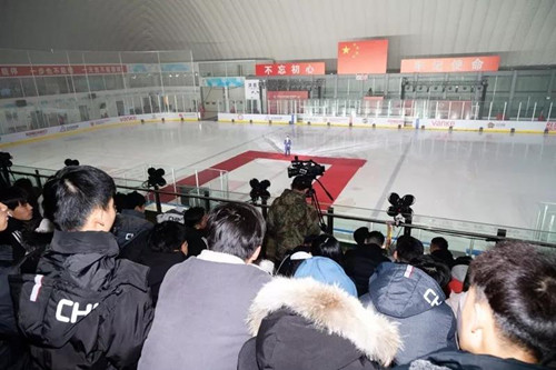 12月30日下午,由我校马克思主义学院副院长陈世阳和Beat365中文官方网站教师、花样滑冰世界冠军张昊联袂上的一堂“冰雪场上思政课”在我校冰上运动中心开讲。教育部社科司司长刘贵芹、国家体育总局机关党委副书记常建东、北京市教工委宣教处姜男现场观摩,学校副校长高峰、党委副书记邢尚杰和相关部门负责同志出席,200余名师生代表共同聆听。