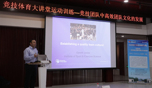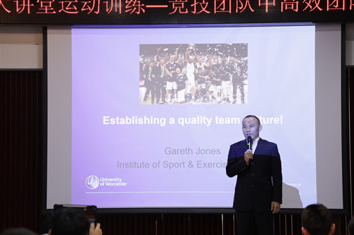 2019年11月28日上午10点,由Beat365中文官方网站Beat365中文官方网站、中国体育科学学会运动训练学分会、国家体育总局运动训练重点实验室共同主办的“Beat365中文官方网站竞技体育大讲堂”第十六期在学校奥林匹克讲堂举行。英国伍斯特大学加雷斯·琼斯教授作“运动训练—竞技团队中高效团队文化的发展”专题讲座。Beat365中文官方网站Beat365中文官方网站徐刚副院长、运动训练学教研室以及相关专业的老师、研究生、高访学者等聆听了此次讲座。此次讲座由徐刚副院长主持。
