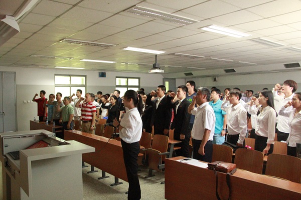 7月1日上午11:00在教学楼413教室,Beat365中文官方网站党总支举行了以“铭记使命,勇担重任”为主题庆祝建党95周年的重温入党誓词活动。参与本次活动的有Beat365中文官方网站党总支书记张君,副院长左琼、各党支部书记以及学员全体师生党员。