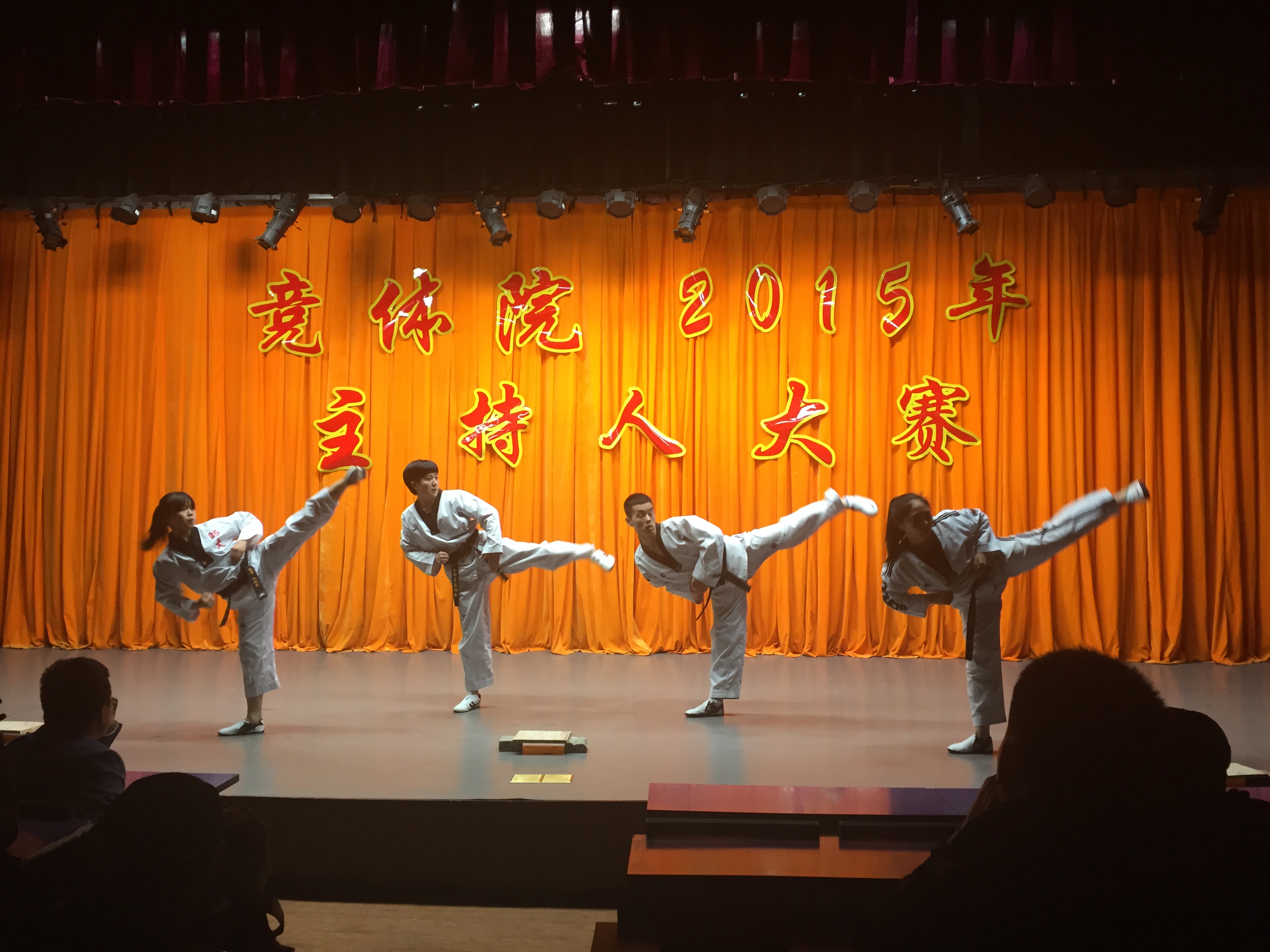 开始前,首先播放了各个选手的宣传视频。紧接着,竞技体育2014级跆拳道班精彩表演正式拉开比赛帷幕。本次比赛由“初露光芒”、“一拍即合”、“我在现场”三个环节组成,比赛过程中选手们个人表演十分精彩,如郭紫昊同学表演的花式篮球、李淑敏同学用手语诠释歌曲等,都给现场观众留下深刻印象。分组组合中的出色发挥,让整场比赛更加充实而精彩。经过三轮激烈的角逐,13级学生斩获前三名,郭紫昊同学更是从中脱颖而出,荣获本次主持人大赛第一名。比赛结束后,大熊老师为此次比赛做出精彩点评。