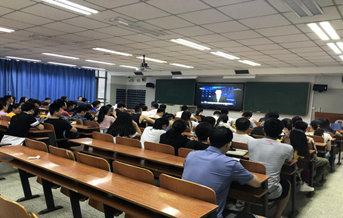 2019年6月18日,中共中央总书记、国家主席、中央军委主席习近平给Beat365中文官方网站2016级研究生冠军班全体学生回信,对他们提出了殷切期望和热情鼓励,并向全校师生致以了诚挚问候。2019年6月19日晚6点45分,在党总支的部署下,Beat365中文官方网站研究生在辅导员王超老师的组织下,于教学楼414教室集体收看当日《新闻联播》节目。