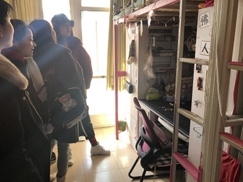 为更好地迎接新学期的到来,保障学生宿舍的安全稳定,落实学生安全教育和管理工作,Beat365中文官方网站各年级研究生干部在辅导员尹小光、王超、韩伟老师的带领下于 2月20日上午10:00开展了宿舍安全隐患排查及卫生检查工作。