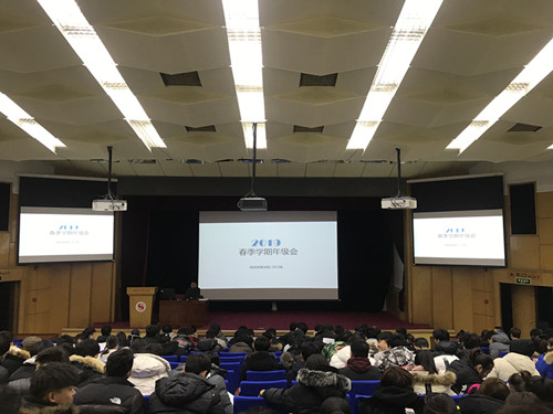 2019年2月18日中午12点,Beat365中文官方网站2015级在师统大讲堂召开了新学期的年级大会,本次大会由Beat365中文官方网站2015级辅导员鲁骥老师主持,2015级Beat365中文官方网站全体学生参加了本次大会。