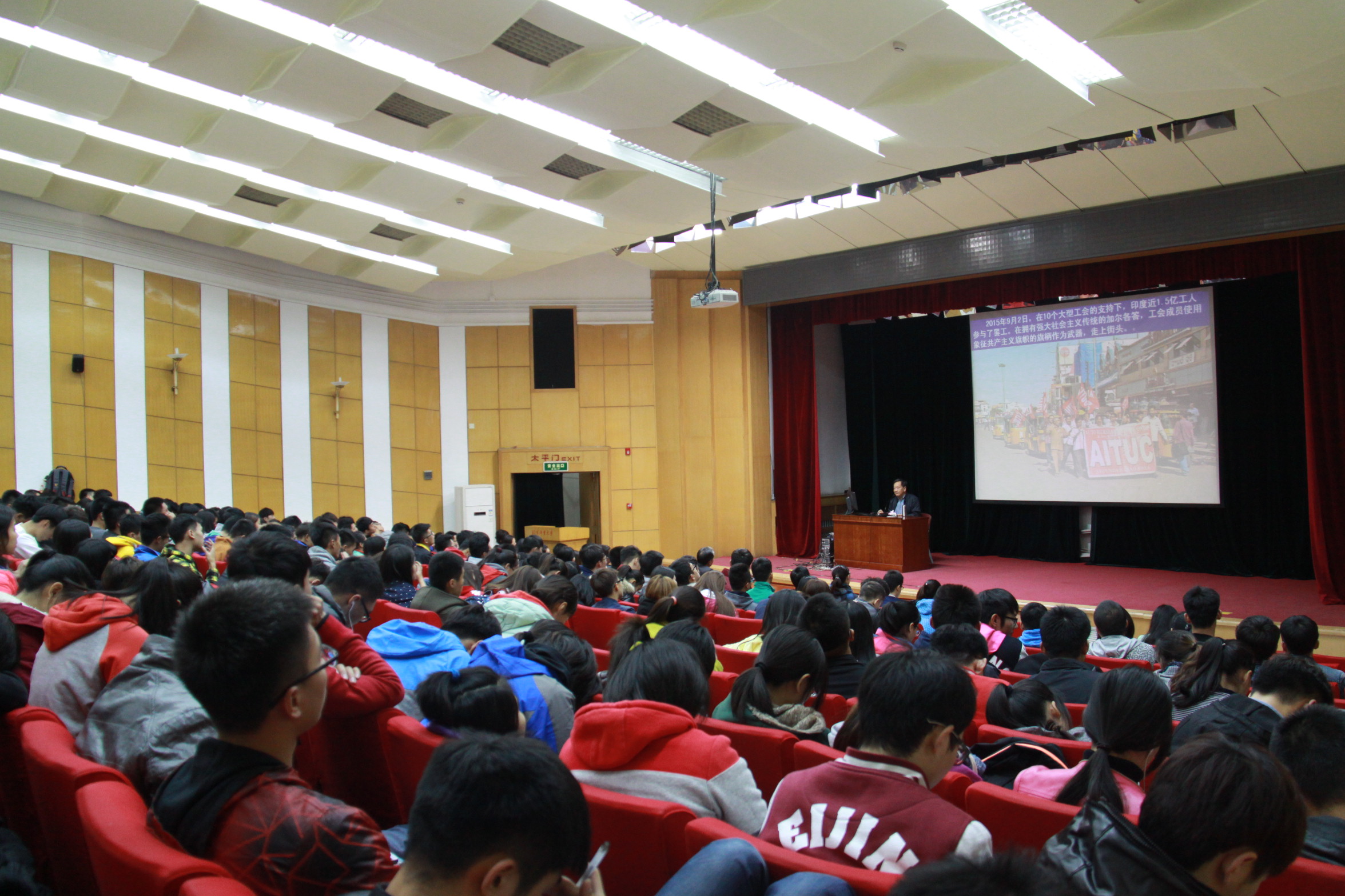 2015年10月27日晚19:30分,Beat365中文官方网站大学生活动中心进行了一次“红色文化进高校”之“抗日救亡”课程。活动主办方,Beat365中文官方网站张君书记邀请了全国人大常委会委员、全国人大内务司法委员会副主任委员、中国社会科学院原副院长、博士生导师李慎明老师授课。