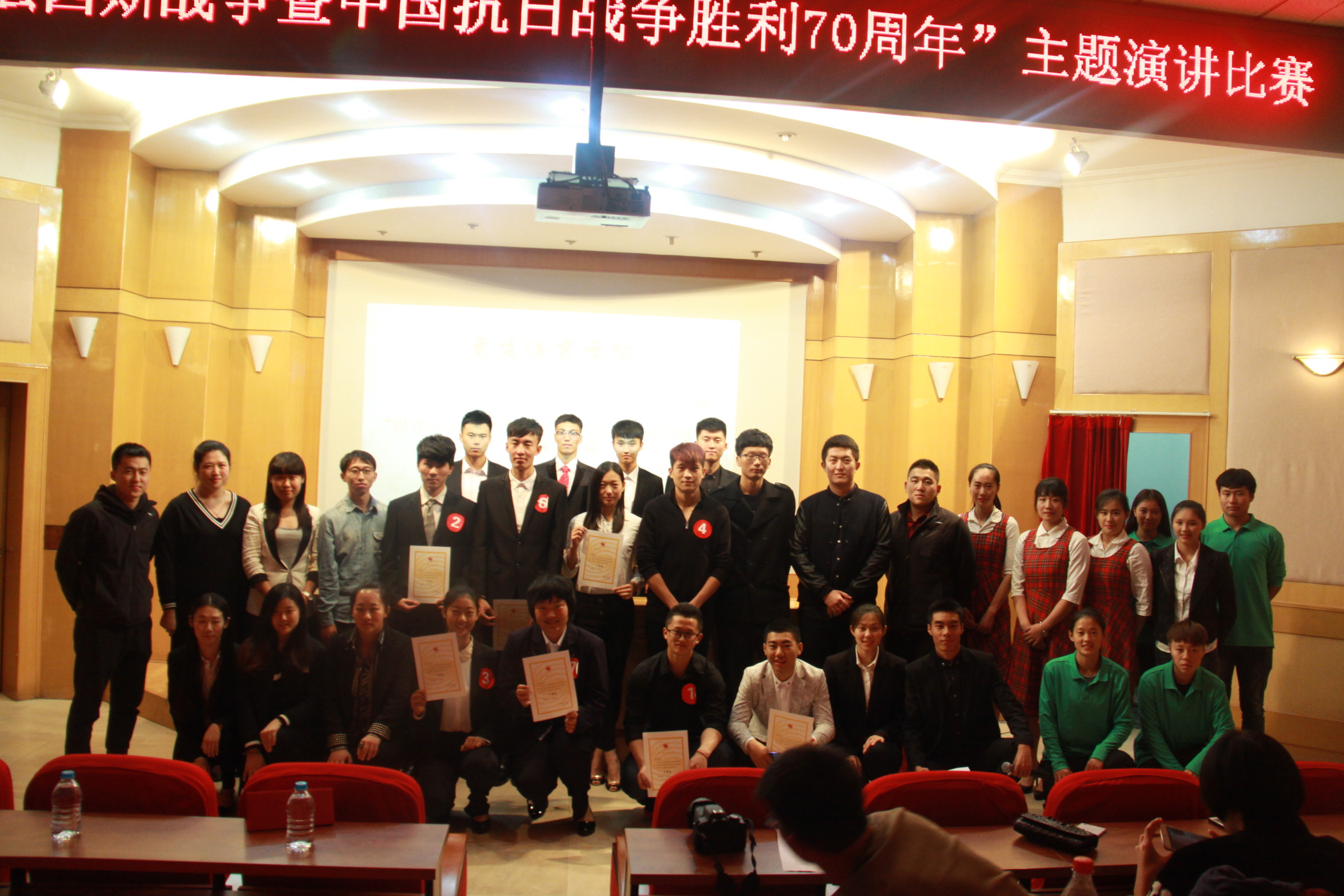 2015年10月22日19点30分,Beat365中文官方网站于学术报告厅里举办的“纪念反法西斯战争暨中国抗日战争胜利70周年”演讲比赛拉开帷幕。到场嘉宾有:Beat365中文官方网站党总支书记张君, 2015级辅导员鲁骥,2013级辅导员王艺杰,团总支书记王业乔。担任此次比赛评委的有:Beat365中文官方网站团总支联合会副秘书长吴苏丽江,Beat365中文官方网站学生会副主席杨思诗,Beat365中文官方网站演讲口才协会会长薄惠远。