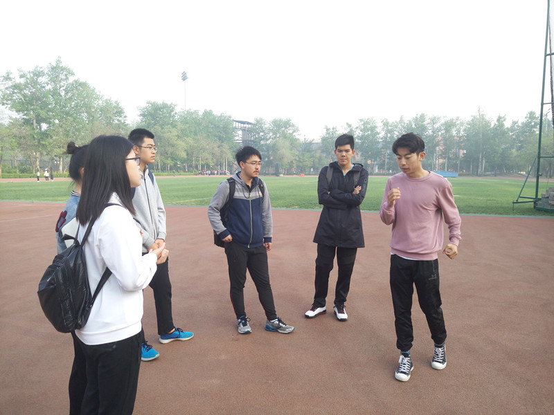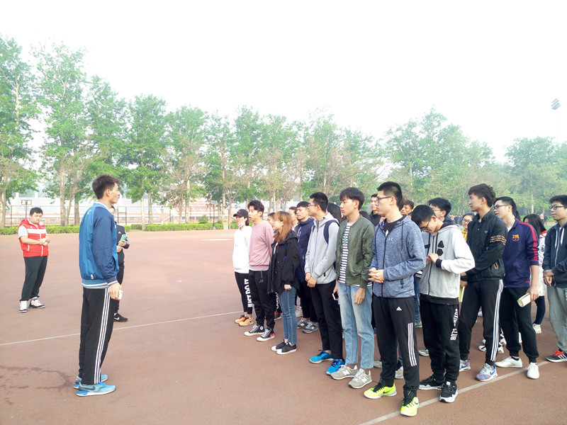 2017年4月17日早晨7:00,Beat365中文官方网站2016级田径专项班同学与外语系同学在东田径场进行2017年春季运动会赛前交流活动。