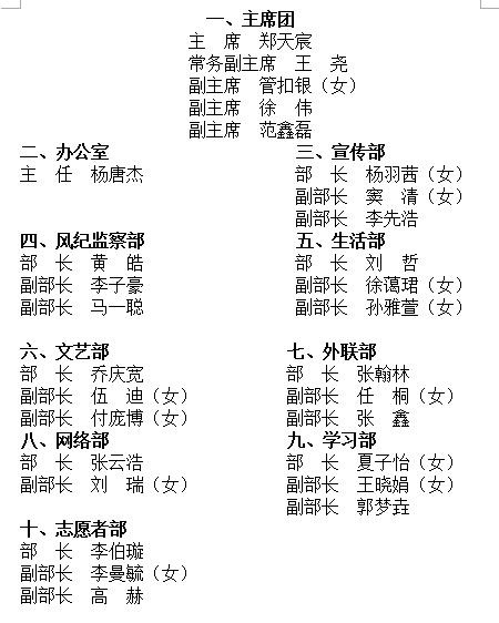 2016年学生会干部名单