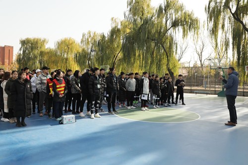 天气微凉,但丝毫没有挡住大家火热的心,参赛队员早早地来到比赛场地热身,啦啦队员和工作人员也早已守候在场边。12:15分,苍海院长进行简要讲话:“学院对于此次篮球赛表示充分支持,希望队员们要积极参赛、敢于拼搏、赛出风格,展现竞体人风采,预祝本次比赛取得圆满成功。”苍海书记李显老师分别为两场比赛开球,比赛正式打响。